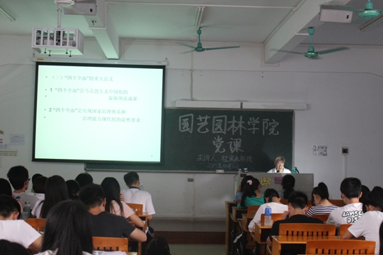 10月21日下午,园艺园林学院党课讲座在白云校区杨钊杨勋楼402室顺利开展。本次讲座由我院退休老教师、原社科部主任杜宋来教授主讲。园艺园林学院党总支副书记陈晓玲、全体辅导员、学生党员和全体入党积极分子参加本次党课。党课由该院学生党支部书记余倩花老师主持。