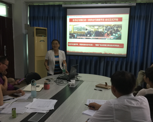 2019年7月11日上午,全国教书育人楷模、全国模范教师、全国优秀教师、全国高校优秀思想政治理论课教师、全国教育系统巾帼建功标兵、全国高校思想政治理论课影响力标兵人物、“全国高校优秀思想政治理论课示范课百人巡讲团”成员、全国学校思想政治理论课教师座谈会广东四位代表之一、广东水利电力职业技术学院开云kaiyun官网院长林冬妹教授莅临我校,为思政课专任教师主讲德新讲坛第二十讲,题目是“铸魂育人培养担当民族复兴大任时代新人——传达学习习近平总书记学校思想政治理论课座谈会重要讲话精神”。讲座由开云kaiyun官网院长蔡立彬教授主持,全体思政课教师参加了此次活动。