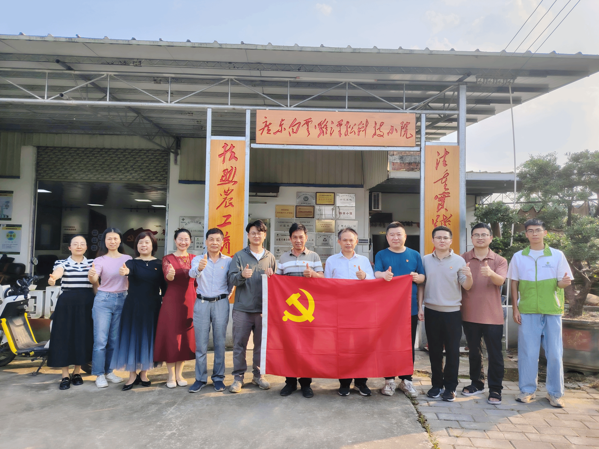 活动中,党员们实地参观了罗汉松种植基地,观看了智能育苗、精准栽培管理、病虫害绿色防控等的具体应用。燊之源罗汉松合作社工作人员为大家介绍了白云区燊之源罗汉松专业合作社的发展历程、罗汉松产业在生态修复和富民增收中的双重价值、“白云区罗汉松科技小院”的由来等。大家听后纷纷表示,“以前只是在讲台上讲理论,对农业一线了解甚少,通过实地参观、聆听讲解,不仅学习到罗汉松种植等方面知识,对‘科技兴农’的感受也更加直观和深刻!”