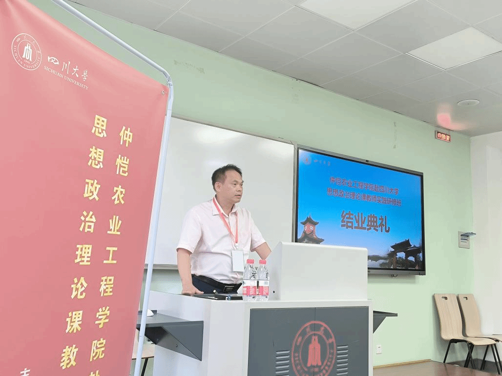蔡立彬院长对本次实践研修活动进行了总结。首先,他对四川大学开云kaiyun官网的精心组织和安排表示了感谢,认为本次实践研修活动内容丰富、形式多样,通过学术讲座、现场教学相结合的方式,让学员们对四川的历史底蕴、文明传承、家国情怀、乡村振兴等方面有了全方位的了解,为我们提供了鲜活的教学素材,拓宽了我们的视野与思维;其次,他称赞了本次研修过程中全体学员的精神风貌,认为学员们展现了认真积极的学习态度,不放过任何一个学习机会,即使天气炎热、行程紧凑也毫无怨言,展现了吃苦耐劳的精神;第三,他认为此次研修对仲恺马院有多方面的积极意义,高水平的学术讲座和丰富多彩的现场教学,能够有效促进我院老师教学水平的提升、科研思路的拓展、管理工作的改进。