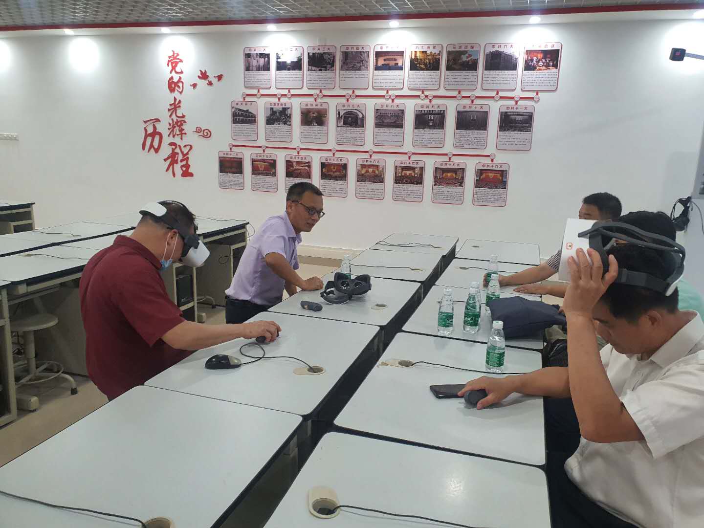 在思政课体验教学中心,张文峰副校长亲身感受了基于VR(虚拟现实)设备的红色革命文化体验式教学。随后仔细地询问了中心的建设情况,并与中心工作人员就思政课体验式教学模式的建构问题进行了探讨,做出了指示。