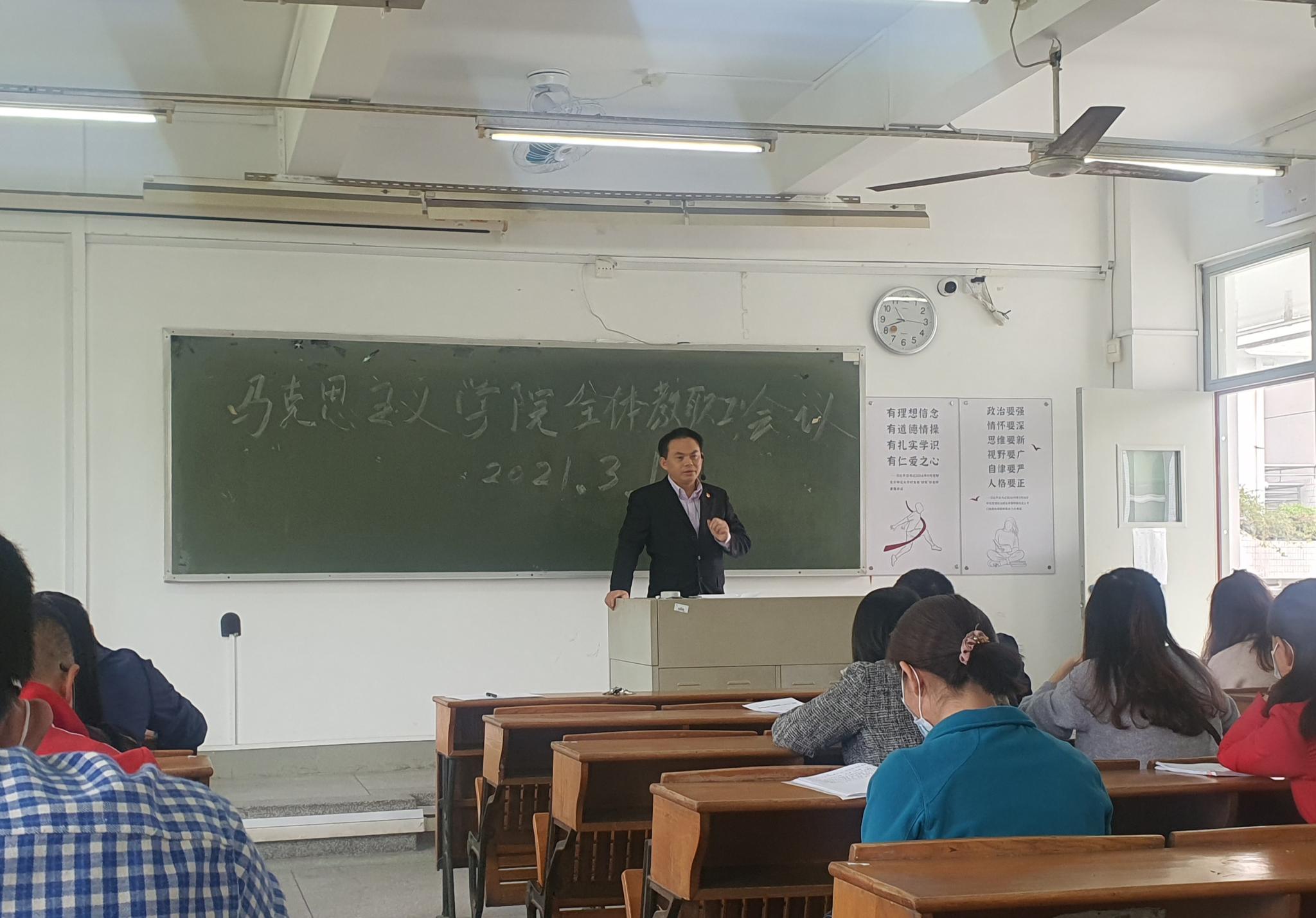 2021年3月1日上午,开云kaiyun官网在海珠校区教学楼804室召开本学期第一次教职工大会,全体教职工参会。会议由院长蔡立彬教授主持。