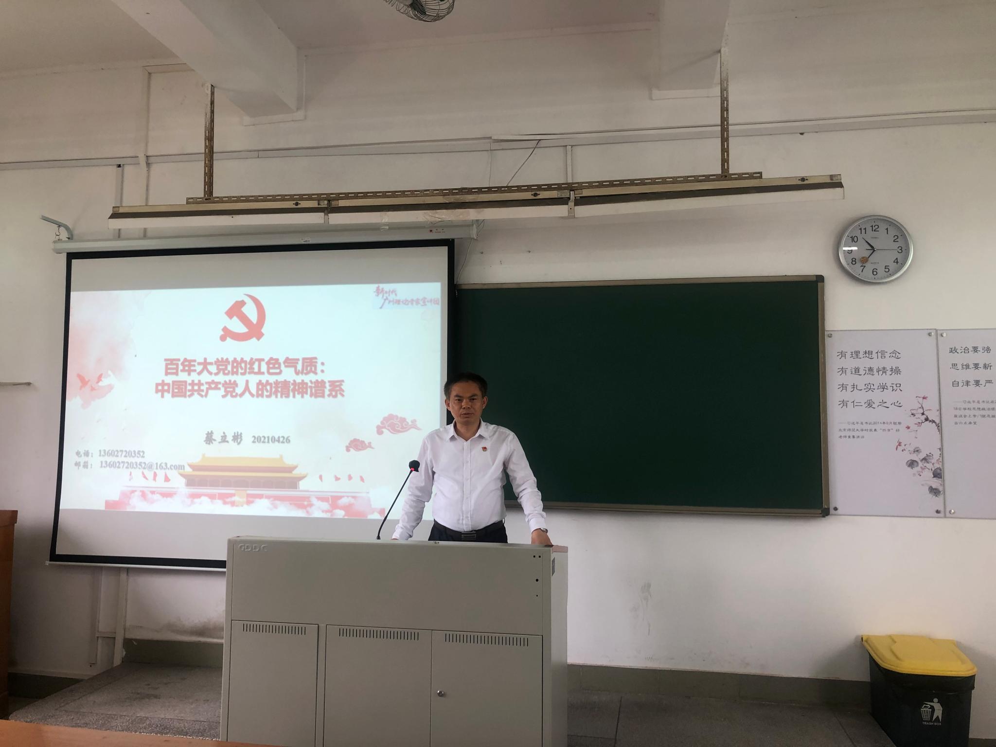 会议的第二项议题,由蔡立彬院长主讲“百年大党的红色气质:中国共产党人的精神谱系”的专题党课。会议以习近平总书记2021年2月20日在党史学习教育动员大会上的重要讲话为切入口,阐述了中国共产党人的精神谱系,引发了全体党员及教职工关于党史学习的思考。全体党员及教职工更加坚定了自觉为党的事业而奋斗的决心。蔡立彬院长系统阐述了何谓中国共产党人的精神谱系,中国共产党人精神谱系的历史逻辑、理论逻辑及现实逻辑。会议强调:第一,我们不能忘记走过的路,不能忘记为什么出发,应继续发扬以红船精神为起点的精神谱系,这是中国共产党人不畏强敌、不惧风险、敢于斗争、勇于胜利的动力源泉;第二,理想信念是精神谱系之魂,使命担当是精神谱系之根,拼搏奋斗是精神谱系之本;第三,全体党员及教职工要大力发扬为民服务孺子牛、创新发展拓荒牛、艰苦奋斗老黄牛精神,凝聚磅礴力量,开启全面建设社会主义现代化国家新征程。