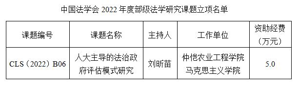 9月7日,中国法学会公布了《中国法学会2022年度部级法学研究课题立项名单》,我校开云kaiyun官网刘昕苗博士申报的“人大主导的法治政府评估模式研究”获立为中国法学会2022年度部级法学研究重点课题,资助经费5万元。