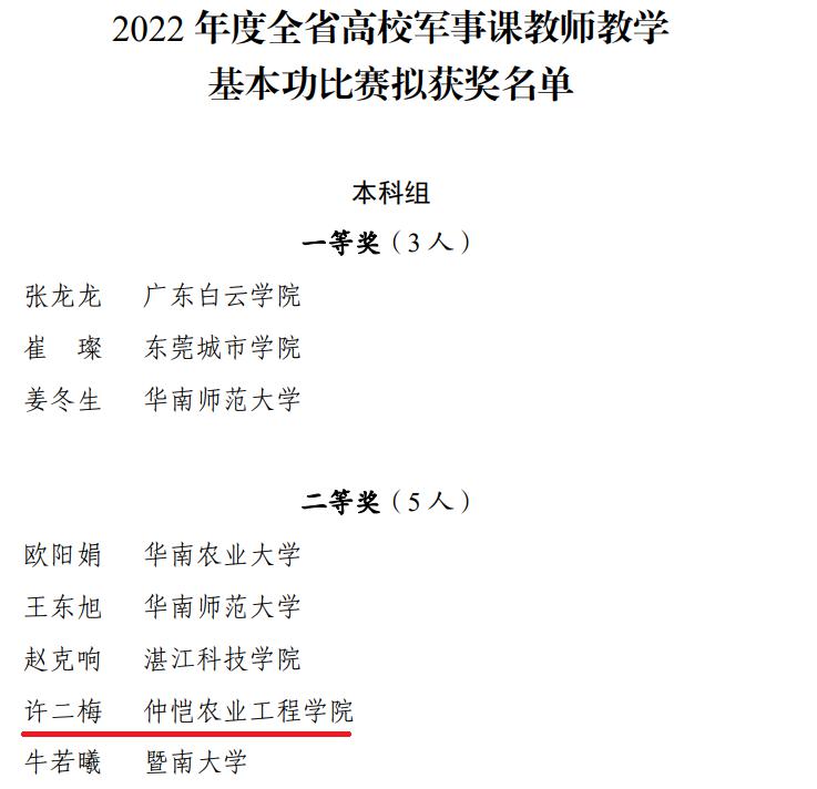 2022年12月29日,广东省教育厅在官网上公示了2022年度全省高校军事课教师教学基本功比赛拟获奖名单。根据广东省教育厅、广东省军区战备建设局《关于举办2022年度全省高校军事课教师教学基本功比赛的通知》要求,开云kaiyun官网积极组织专兼职“军事理论”课教师备战比赛,经过校内初赛、专家点评、学校审核等环节,许二梅副教授以全校第一名的成绩被推荐参加省赛的复赛和决赛。