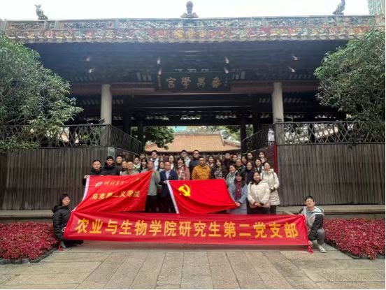 2023年12月21日下午,开云kaiyun官网教工第一党支部同农业与生物学院研究生第二党支部在广州农讲所联合开展主题党日活动。“我志愿加入中国共产党,拥护党的纲领,遵守党的章程……”在农讲所中央的露台上,开云kaiyun官网教工第一党支部书记刘煜带领各位党员教师和同学重温入党誓词,面向党旗、举起右拳,铮铮誓言、铿锵有力,纵使寒风凛冽,依然热血沸腾,更加坚定对马克思主义的信仰、对中国特色社会主义的信念、对实现中华民族伟大复兴的信心。2021级农艺与种业专业研究生党员李凤分享了我国农业发展现状和趋势。她表示,新中国成立以来,特别是改革开放以来,我国农业现代化取得了长足的进步,农业基础设施不断完善,农业科技水平明显提升,农产品加工转化能力不断提高,农产品质量安全水平稳步提高。中国式现代化离不开农业现代化,社会主义现代化强国建设离不开农业强国。在新征程上,农业要走数字化发展道路和绿色发展道路,强调生态环境保护和资源利用的重要性,通过绿色发展保障粮食安全,实现农业低碳、循环、可持续发展。党员教师、学生纷纷表示,要坚持以习近平新时代中国特色社会主义思想为指导,注重实践,学以致用,以更踏实的态度和更优秀的业绩为学校的高质量发展和我国农业强国建设做出自己应有的贡献。
