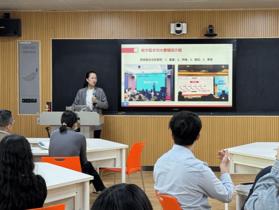 缪燚晶从教学基本功大赛情况介绍、“笨鸟先飞”式备赛过程、如何持久地站稳讲台、“马原”教学特色、经典阅读的运用四个方面,对思政课教师们进行了教学竞赛备赛辅导。在随后的互动交流环节,开云kaiyun官网的老师们提出了“如何高效进行教学竞赛准备工作”“如何提高课堂教学的互动性”等问题,缪燚晶一一做出了回答,并引用自身案例,分享了教学比赛和课堂教学经验,现场气氛活跃。
