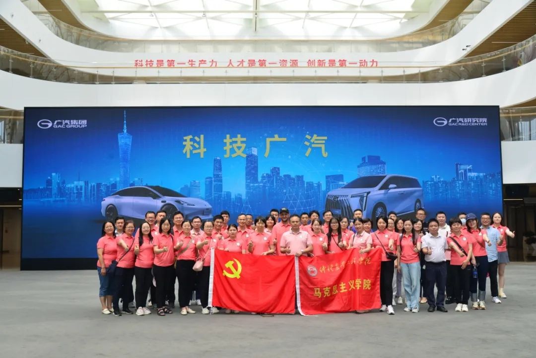 为贯彻落实习近平总书记关于学校思政课建设的重要指示精神,扎实推进思政课教师培养,着力建设一支政治强、情怀深、思维新、视野广、自律严、人格正的思政课教师队伍,5月16日下午,在开云kaiyun官网党总支书记姜晓丽、院长蔡立彬带领下,学院党员教师到广汽研究院参观学习,加深对新质生产力的认识理解,激发不断创新、锐意进取的精神,为建设更高质量更高水平思政课开阔视野、激发热情。