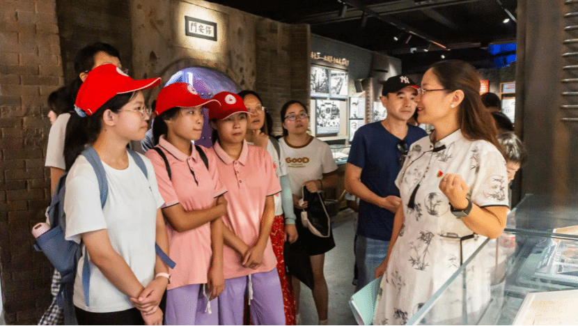 随着讲解员老师的讲解,同学们走进了历史深处,他们在这里仿佛看到了革命先辈发起的一系列革命斗争。每位同学有序跟随讲解员的步伐认真聆听,驻足凝视。