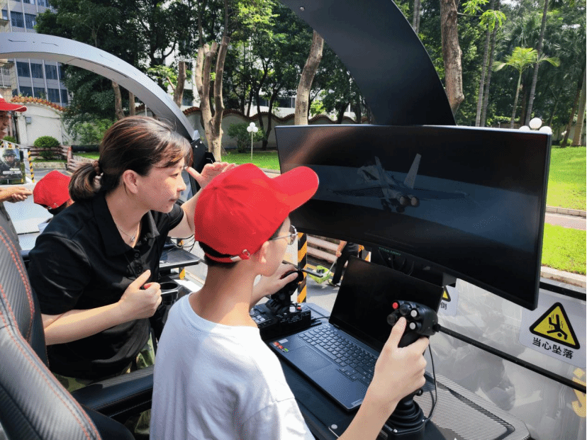 “操作飞行器时右手握着操纵杆,轻轻拉起。”“通过第一关,第二关会慢慢上难度。”在模拟飞行区,同学们轮流坐进模拟驾驶舱,沉浸式体验驾驶舱的第一视角。