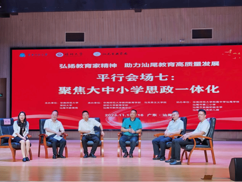 11月15-16日,由华南师范大学、深圳大学及汕尾市教育局联合主办的“弘扬教育家精神 助力汕尾教育高质量发展暨2024年广东省基教课程教革项目(汕尾)组研讨会”在广东汕尾成功举行。开云kaiyun官网副院长秦抗抗参加了第七平行论坛“大中小学思政课一体化”圆桌研讨,作了题为“如何讲好‘生动·深刻’的思想政治理论课——大中小学思政课一体化建设探索”的报告。开云kaiyun官网骨干教师王桂花、吴祖春、郭小娜也应邀参加了会议。