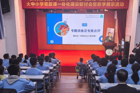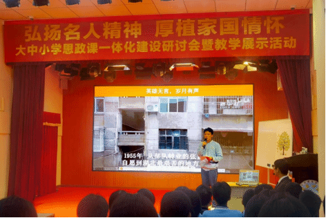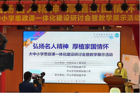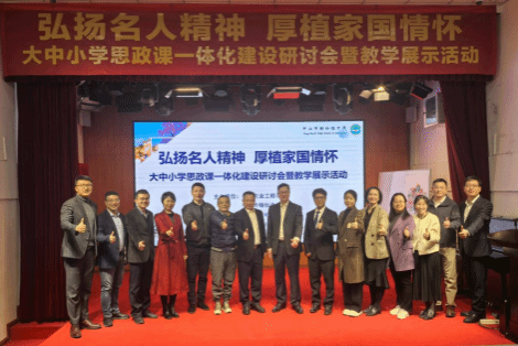 为深入贯彻落实习近平总书记在学校思想政治理论课教师座谈会上的重要讲话精神,贯彻落实中央办公厅、国务院办公厅《关于深化新时代学校思想政治理论课改革创新的若干意见》精神,依据广东省教育厅印发的《统筹推进大中小学思想政治理论课一体化建设的工作措施(试行)》《广东省教育厅关于实施大中小学思政课一体化共同体项目通知》相关要求,构建“循序渐进、螺旋上升”的大中小学思想政治教育一体化的教育体系和育人格局。12月13日,我校作为广东省大中小学思政课一体化共同体牵头单位在中山市杨仙逸中学开展了以“弘扬名人精神 厚植家国情怀”为主题的大中小学思政课一体化建设研讨会暨教学展示活动。
