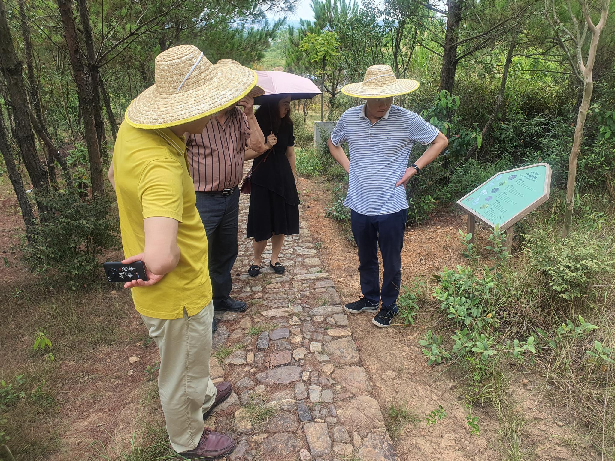 7月29日上午,团队一行来到连平县绣缎镇,镇长何晓勤与村支部书记曾康热情接待了服务团队。在曾书记的带领下,团队首先来到了位于绣缎镇尚岭村的关爷埂古驿道。据曾书记介绍,该条古驿道筑于清代,相传是大湖镇曾氏十七世桐岗公捐筑,古驿道由河石铺砌,因在此路段的山顶处有一关公庙而得名。团队详细了解了当地在古驿道旅游产业开发上的想法及面临的困难和问题,采集了关于古驿道的历史故事,并给当地政府提出了加大古驿道文化研究力度,增加古驿道文化旅游点的政策建议。