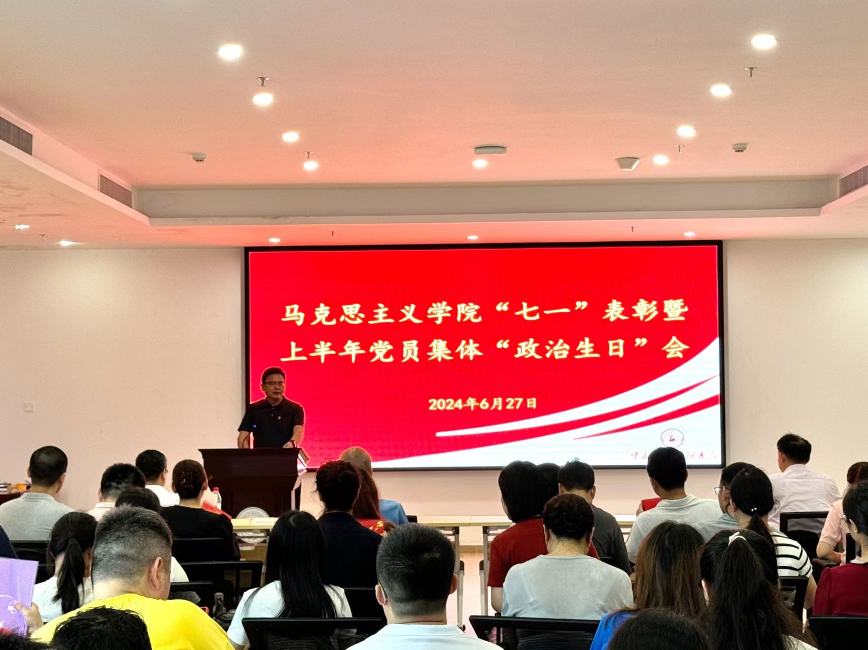 学校党委书记宋垚臻对全体党员进行集体谈话。他首先对受到表彰的先进集体和优秀个人表示祝贺,他希望全体党员都要以过“政治生日”为契机,思忆入党为什么,检视为党做什么,对标给党留什么,时刻牢记共产党人的初心使命,给自己加油充电,补足精神之“钙”。他重点结合党纪学习教育,对全体党员提出了期望期许。一要站稳政治立场,始终牢记共产党员的初心使命,不断净化、完善、提升自我,敢于担当、勇于负责。二要守住纪律底线,始终以合格党员的标准规范自我,做到学纪、知纪、明纪、守纪。三要不断提升能力,始终保持共产党员的先进性,自觉担当起立德树人使命,不断提高思政课的针对性和吸引力。